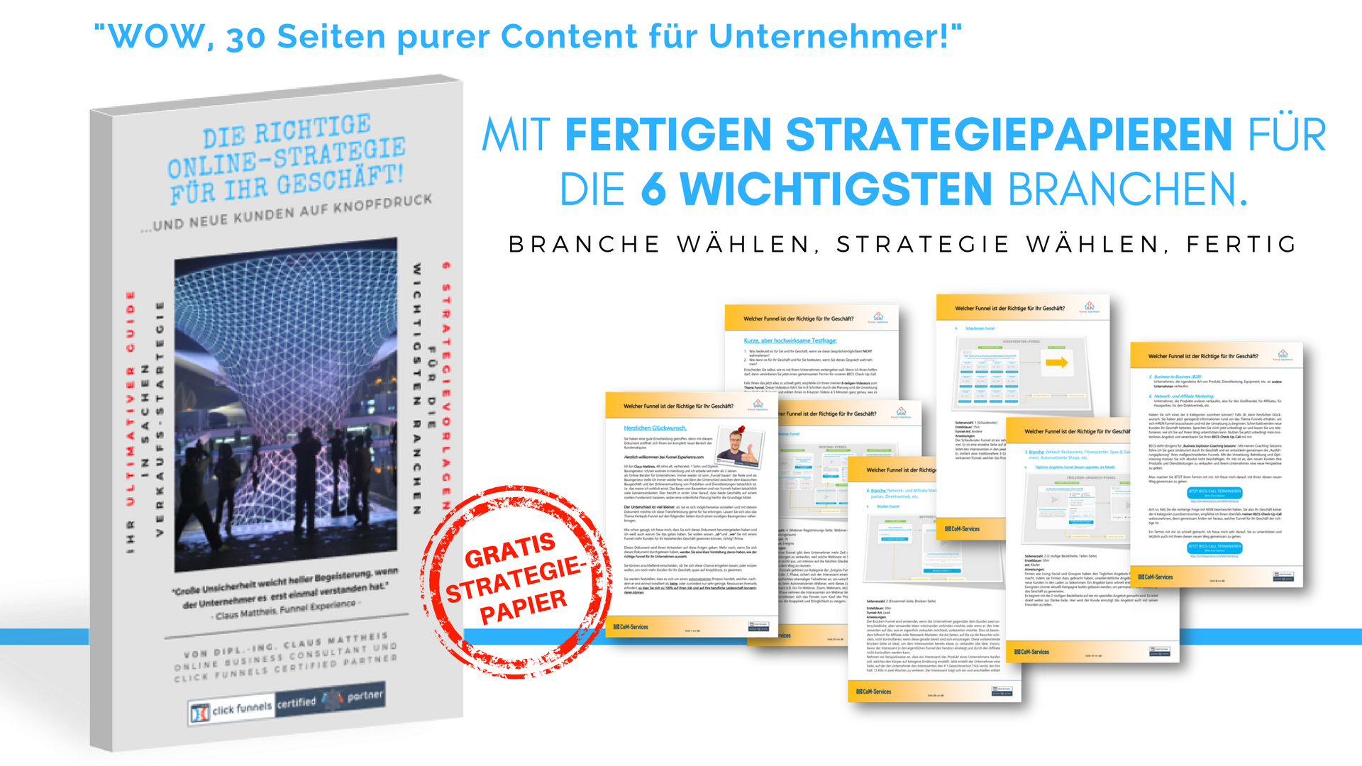 Erfahren Sie in diesem GRATIS Strategiepapier, wie sie  Täglich neue Kunden für Ihr Geschäft gewinnen ohne dafür Zeit investieren zu müssen.